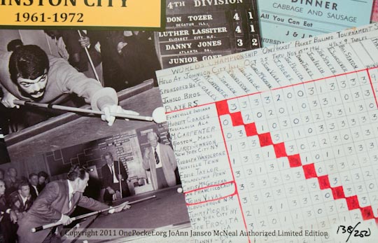 This high quality poster print is chock full of great images of the players, the ambience and original memorabilia from Johnston City! Several of the photos of players are great "Name that Player" group shots that you can spend hours trying to identify all of the huge icons of our sport from Fats, to Lassiter to Taylor, Shorty and many, many more.