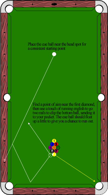 Bill Marshall's opening break for nine ball One Pocket. If you know how to shoot this two-rail break shot and your opponent doesn't, it gives you a huge advantage on your break!