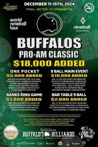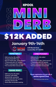 $12k added ($6k to one pocket) -- mini version of dcc -- $300 entry - 16 player max in the one hole